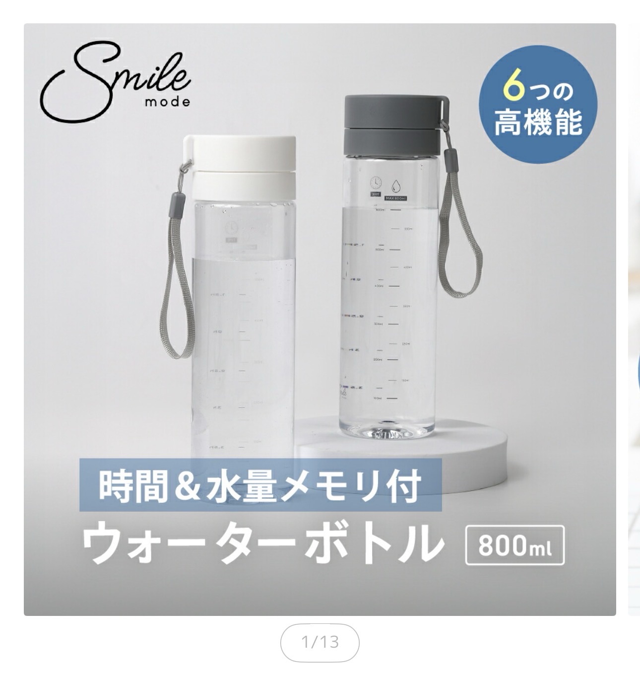 1. ❶ Smile Mode ウォーターボトル 800ml|時間メモリで「飲み忘れ」をやさしく防止